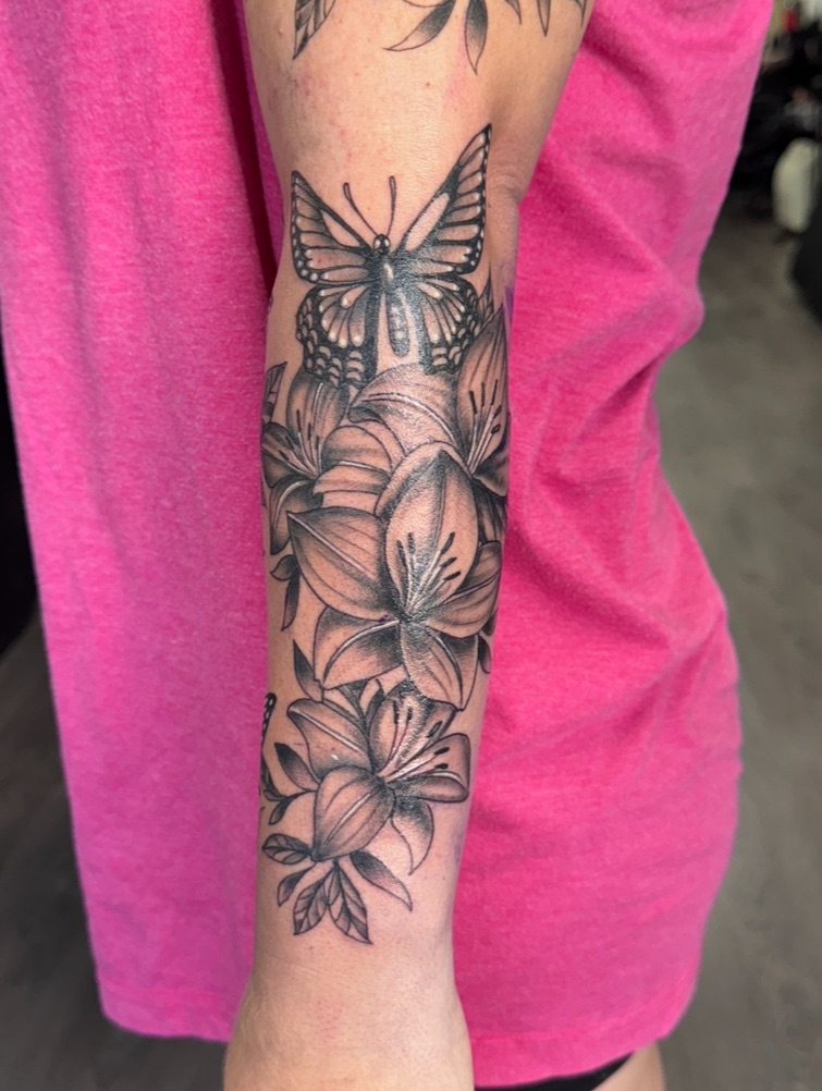 Explore our recent work showcasing black and grey, vibrant color pieces, and custom designs created by our experienced artists.